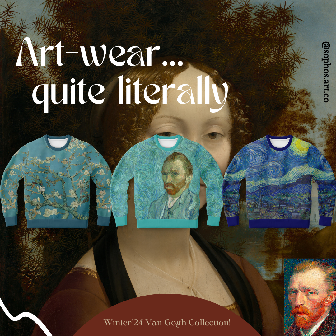 A fusion of fashion and masterpiece, featuring extra comfy sweatshirts enhanced with iconic works of art.